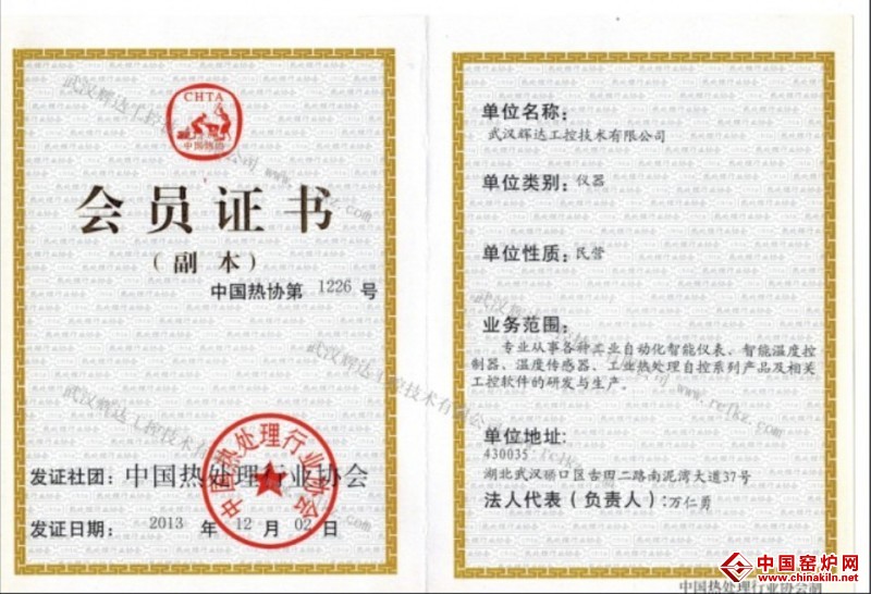 » 中国热处理协会会员证