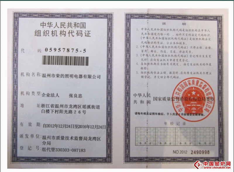 | 发证机构: | 温州市质量技术监督局龙湾区分局 | 发证时间 : | 2011-12-17 |
