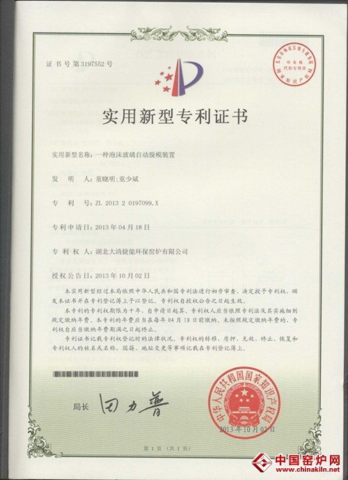 新闻分类 新闻中心 大清窑炉再次获得一项国家发明专利授权