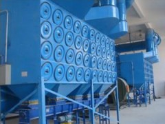 含尘气体进入除尘器灰斗后,由于气流断面突然扩大及气流分布板作用,气流中一部分粗大颗粒在动和惯性力作用下沉降在灰斗;粒度细、密度小的尘粒进入滤尘室后,通过布朗扩散和筛滤等组合效应,使粉尘沉积在滤料表面上,净化后的气体进入净气室由排气管经风机排出。 滤筒式除尘器的阻力随滤料表面粉尘层厚度的增加而增大。阻力达到某一规定值时进行清灰。此时PLC程序控制脉冲阀的启闭,首先一分室提升阀关闭,将过滤气流截断,然后电磁脉冲阀开启,压缩空气以及短的时间在上箱体内迅速膨胀,涌入滤筒,使滤筒膨胀变形产生振动,并在逆向气流冲刷的作用下,附着在滤袋外表面上的粉尘被剥离落入灰斗中。清灰完毕后,电磁脉冲阀关闭,提升阀打开,该室又恢复过滤状态。清灰各室依次进行,从第一室清灰开始至下一次清灰开始为一个清灰周期。脱落的粉尘掉入灰斗内通过缷灰阀排出。