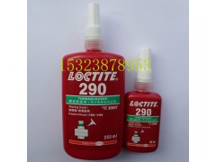 LOCTITE汉高乐泰290胶水、乐泰290螺纹锁固剂,渗透级,中强度,低粘度,快速固化。用于已装配好的M2-M12螺纹的锁固与密封。也可用于密封焊缝,铸件砂眼等(0.254mm以下)微孔。防止螺纹生锈及腐蚀。拆开时需局部加热及使用工具。LOCTITE 290 适合于锁固和密封螺纹紧固件. 产品通过低粘度和毛细管渗透作用, 可以渗透进已装配好的的螺栓当中, 可以消除螺栓在应用过程出现的松动. 该产品在隔绝氧气的金属密封面间固化,可以防止由于震动或冲击而引起的松动或泄漏. 该产品还可以用于填充焊缝、铸造或粉末冶金部件的缺陷。
