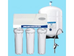 ???? 第四级:(RO反渗透膜)孔径仅0.0001微米,一个细菌要缩小4000倍,传染性病毒也要缩小200倍以上才能通过,因此可有效除去水中细菌、病毒、重金属离子、农药残留物等有害物质。