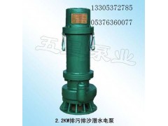 BQS(W)矿用隔爆型排污排沙潜水电泵,是泵和电动机组合一体的电力排灌设备,外型美观,结构简单,密封性能好,性能稳定,寿命长,安装使用方便,且可以长期在水下连续作业,被广泛用于煤矿立井、斜井及井底散煤泥地自动化排水。内装式电泵,水由电动机夹层中流过,有效的延长了电泵的使用寿命;外装式电泵,叶轮采用双流道大过流结构,运行平稳,排污能力强,防缠绕,无堵塞现象,并且有体积小,重量轻,携带方便的特点。