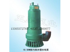 BQS(W)矿用隔爆型排污排沙潜水电泵,是泵和电动机组合一体的电力排灌设备,外型美观,结构简单,密封性能好,性能稳定,寿命长,安装使用方便,且可以长期在水下连续作业,被广泛用于煤矿立井、斜井及井底散煤泥地自动化排水。内装式电泵,水由电动机夹层中流过,有效的延长了电泵的使用寿命;外装式电泵,叶轮采用双流道大过流结构,运行平稳,排污能力强,防缠绕,无堵塞现象,并且有体积小,重量轻,携带方便的特点。
