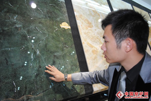 五月玫瑰陶瓷营销副总经理关桐华向记者介绍“绿野仙踪”产品