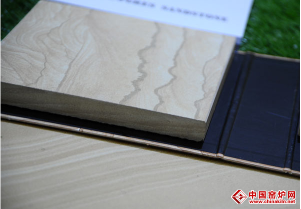 笔者在展厅里看到了这款瓷砖的样板。从笔者所拍的照片中,读者们可以发现,这款瓷砖与传统瓷砖相比,在厚度上略薄,从而达到环保和节省材料资源的目的。外观低调奢华,质量也同样让人称赞,笔者通过展厅现场的观察发现,这款薄板非常易于铺贴,而且装饰效果绝佳。