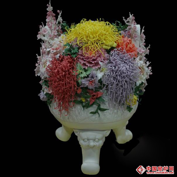 如作品《国粹·穆桂英挂帅》上细致的京剧造型服饰,以及手捏瓷上枝、叶、花的处理,和民族风系列作品的工艺,已经是在历史上最高水平了,以目前的技术发展程度,很难再做得更精细。有些作品的烧制时间会达到一个月以上,如果用传统柴窑烧制工艺,温度很难控制,成品率极低。用恒温电窑,成品率就很高。恒温电窑是我们经常用于精细化作品的现代技术之一。”