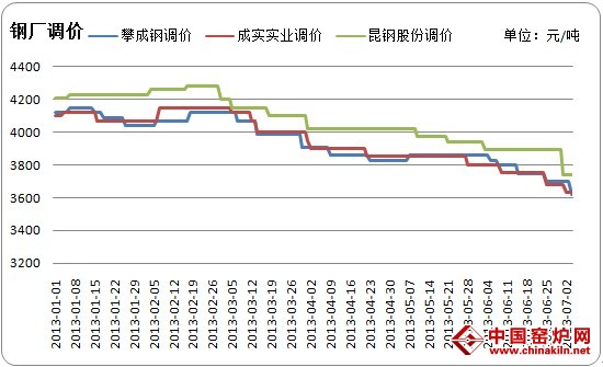 图7西南地区部分主导钢厂调价