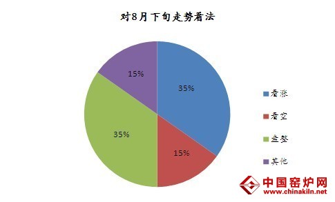 从调查中可看出,35%的商家对8月中下旬走势看涨,看涨商家占多数,15%商家对后期看空。多数商家表示,看涨原因主要是:政策方面,政策重心向“稳增长”偏移已无悬念,随着稳增长逐步出台和落实,将利好钢市需求。原料方面,从原材料价格,到唐山钢坯价格,以及钢材现货和期货各合约携手上行,截止目前反弹幅度达到10%-15%。库存方面:钢材市场库存却保持持续下降,目前去库存进程依旧比较顺畅。