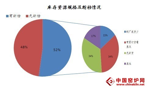 在库存资源是否充足方面,卓创调查53%库存规格不齐全,其中有34%的商家表示目前对钢厂订货意愿低,主要原因是因进入传统淡季,需求低迷,商家惯性以出货为主,故进货意愿相对较弱,15%的商家表示,钢厂控制发货量,主要是因天气炎热,钢厂检修居多。
