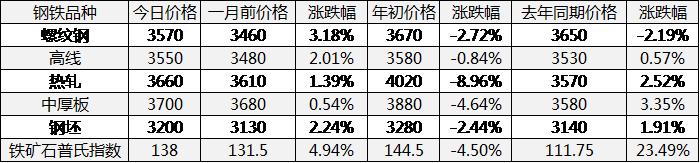 近期,卓创老毕对于钢铁行业中几大相关龙头产品做了一下梳理,简单做了一个表格,把最新市场报价和前期的几个报价做了比较。从中来不难发现诸多规律。比如,长强板弱成为上半年的一个不变话题,铁矿石成本居高不下又称明星品种等等。
