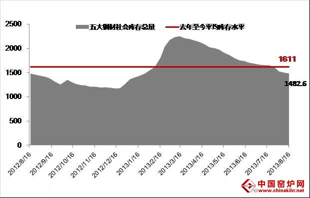 从最近的五大钢材品种螺纹钢、线材、热轧、冷轧、中厚板库存表现来看,社会库存水平已经下降到1482.60万吨,连续22周下降。目前的库存水平来说,可以建造741个鸟巢,同时可以修建432公里的城规。而目前的库存水平和年初比较来看增加119.78万吨,和去年同期相比增加3.1万吨,几乎持平。同时,我们从钢铁行业的主要组织中钢协最新数据来看,8月上旬末重点统计钢铁企业钢材库存为1216万吨,比上一旬下降19万吨,降幅1.5%。。重点统计钢铁企业3月中旬库存量达到顶峰后,至今震荡下行,随着市场成交活跃,后期仍将呈现“去库存化”趋势。两组去库存化数据表明,近期的市场价格得到一定支撑是有其必然原因的,其中可售资源减少,市场心态好转,刚性需求仍在均是影响因素。