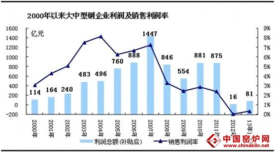 图:2000年以来大中型钢企利润及销售利润率对比图