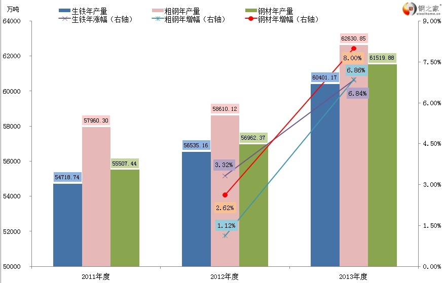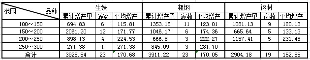 表1:生铁、粗钢与钢材产量比较(单位:万吨)