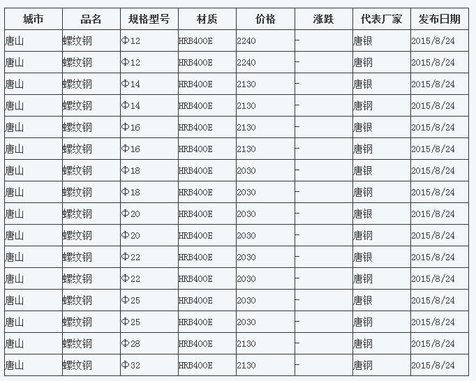 8月24日唐山市场螺纹钢最新行情