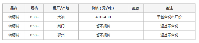 8月26日湖北市场铁精粉价格行情