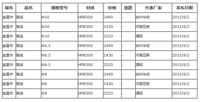 9月2日宜昌市场高线最新指导报价