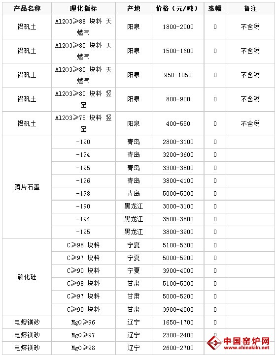 11月19日耐火材料价格行情
