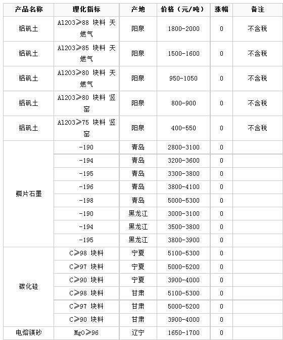 11月24日耐火材料价格行情