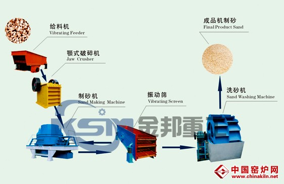 生产制砂机,并为您提供全面的技术支持。制砂生产线通常由振动给料机、颚式破碎机、立轴冲击式破碎机(制砂机)、振动筛、洗砂机、胶带输送机、集中电控等设备组成;设计产量一般为50-500吨/小时。我公司历经数年的开发研究,将具有国际先进水准的直通冲击式破碎机(制砂机)与公司其他系列产品相配套,设计出的全套制砂生产线,处于行业领先地位。全套机制砂生产线设备可用于硬质石灰石、花岗石、玄武岩、河卵石、石屑、各种岩石和矿石尾砂的工制砂,适用于水电、建材、高速公路、城市建设等行业的应用。