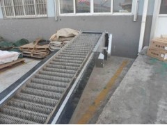 安装过程1 根据设备安装图,在基础平面上预划出设备安装支撑座位置,吊装就位时将此位置与支撑座重合; 2 先将格栅按倾斜度要求暂定在基础上进行定位,如达不到技术图纸要求,可在基础平面上加基础垫层(混凝土或垫板)使之达到标准; 3 然后看格栅两边与基础平面的距离,尽量使设备两边与基础平面的距离相等,如果此时支撑座与预划的安装位置不重合,那没有关系,但保证支撑座不能过于偏离基础垫层,使之保证基础垫层的承载能力; 4 最后将基础垫层与支撑座连接牢固; 5 连接线路,通电试机。无误后方算安装完毕。 安装注意事项1 施工前,技术人员需向施工班组进行技术交底,施工班组在施工前必须认真看图,阅读图纸说明,弄清施工要求。2 施工时,安装人员要及时做好详细的施工记录,不能漏填。3 施工中要把好程序关,操作关,质量检验关。4 做好设备的保护工作,附属的零配件等要妥善保管,易锈蚀的螺栓等零件要涂油保护。5 在安装前,要彻底清除设备的泥土、焊渣、铁锈等脏物,特别是配合表面不能叩碰。6 施工中要遵守安全条例中相关规定,戴好安全帽、穿工作鞋,并正确使用劳动保护用品。7 吊装设备时要有专业人员指挥,不得碰撞损伤设备。8 严禁在悬吊重物下工作或站人,以防起重机或吊索下落时伤人。9 灌浆前必须彻底清除基础表面的灰尘及杂物,并在基础表面洒水湿润,基础表面局部有积水时,可用压缩空气吹除。10 灌浆过程中要有工具捣实,不能有空隙,灌浆的材料符合有关技术文件要求。 回转式格栅清污机防腐:喷砂除锈+环氧富锌底漆+氯化橡胶中间漆+氯化橡胶面漆封闭。其保护能力在20年以上。 日常维#修#和保#养#:1,在运转过程中,如有纤维杂物等缠绕阻塞耙齿链时,应及时清理,以免影响机器的正常运转 2,在机器正常运转时,每隔两个月,须用黄油在各部位的油嘴中注入一次钙基脂 3,减速机中的油须定期更换,一般设备投入使用运转半个月后须更换新油。以后每隔三个月换一次油,平时应注意减速器的油位。 常见故障及排除方法:1. 运转中出现电机正常运转而耙齿链不运转。故障原因:设备过载而导致过载安全销被切断。排除方法: 1)将安全销卸去更换过载安全销 2)查清设备过载原因,主要看有无杂物卡住耙齿链 3)如有杂物卡住耙齿链,清除杂物后方可开机 耙齿断裂,更换耙齿步骤: 1)用手摇把插入电机尾部方榫内,将断裂耙齿所在的耙齿轴摇至检修孔,或采用电控箱上的点动开关控制电机减速机,将断裂耙齿所在的耙齿轴运至检修孔。 2)卸去检修孔边扳手把 3)用铁棒将耙齿链卡住 4)用卡簧钳将多列耙齿所在的两根耙齿轴两端的卡簧卸去 5)将两根耙齿轴抽出,去除断裂的耙齿,装上新耙齿,再将耙齿轴插入,依次将卡簧装上 6)装好检修孔边扳手把即可。 本公司所提供的该设备是完整的最终产品,内容包括: 1、装配完整的格栅机(包括侧边支架、齿耙、齿耙轴、牵引链条、导向轮、张紧调节装置、主动轴、密封橡胶板和排污卸料板等)。 2、带有电机的驱动减速机(包括主动齿轮及传动链等)。 3、就地控制箱。 4、所有安装、调试、运行所需的附件及紧固件等。 5、备品备件及专用维#修#工具。 6、配套服务(包括指导安装、现场调试、试运行、提交图纸和资料,并做好售#后#服务)。 质量保证 1、本产品保修期为一年,(自安装交付之日计算) 2、在保修期内,凡属产品本身质量问题,本公司负责维#修#及更换。 3、以下情况不免费维#修#:(1)超出保修期的产品(2)因安装不符合规定造成的损坏(3)因使用不当或其他人为造成的损坏。 运输:污机部件敞装或箱装运输时,应符合GB/T 191中的规定,安放牢固,采取措施防止变形,并符合陆运、海运及空运的有关规定。对于精密零件、电气柜及仪表等运输,应注意防潮和避振。 存放:品不宜露天裸放,需长期裸放时应将电动机、制动器、液压泵站、电控柜等液压和电气设备拆卸存放仓库。其主机设备应有防雨、防锈、防风砂等措施。对液压件应采取措施防止缸体、活塞杆及备件的变形和老化,并应置入仓库保存。产品长期存放时,每年应清洗一次,并涂防锈油。 厂电:0319 5489998 5489996 李经理 13932981678