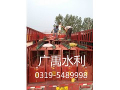 闸框是闸板的支承构件,也是闸板的运转滑道,由地脚螺栓装置固定在水闸闸墩及闸底板的二期混凝土中,将闸板所接受的悉数水压力安全传递到闸室中。为科学合理节省材料及减轻自重,其断面制成格构式,断面尺度按所受荷载巨细和闸板运转状况归纳思考。闸板是用来关闭和敞开孔 口的活动挡水构件, 板面附近设铸铁边框梁 , 为进步闸板的强度 , 板面制成拱形, 拱的圆心角按 6 0 度规划,以下降其所受的水压力。为便于制作、 运送和装置 , 闸板可制成上下几有些 ,待到装置现场后再用螺栓衔接拼装成全体 ,衔接处上下板设置法兰和筋板使其变成闸板的中心横梁, 以进步闸板的纵向刚度 , 在宽度方向设置纵向筋板 ,以进步其横向刚度,一起起到纵梁的效果。