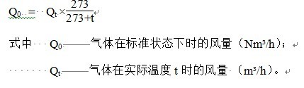 由于气体的体积是热胀冷缩的,为了便于分析、说明问题,常将实际状况下的风量换算成标准状况(即0℃、一个大气压)下的风量。
